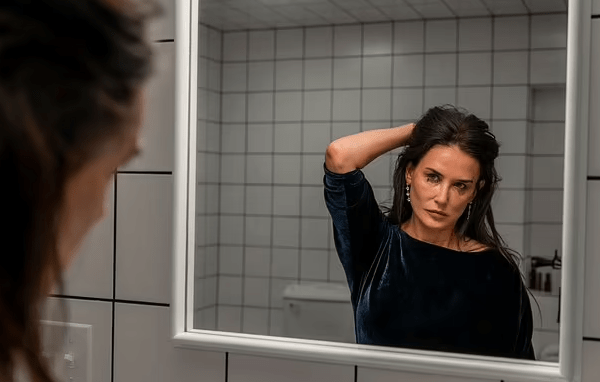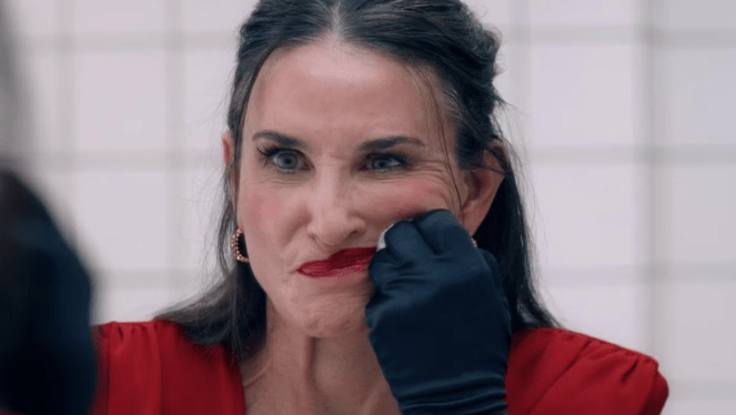 In The Substance, Moore, 62, portrays Elisabeth Sparkle, a former television aerobics instructor who is abruptly dismissed from her role as she turns 50.